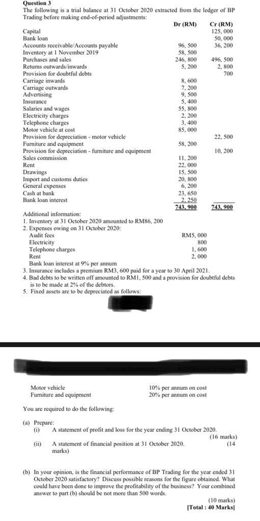 700 Question 3 The Following Is A Trial Balance At 31 Chegg Com