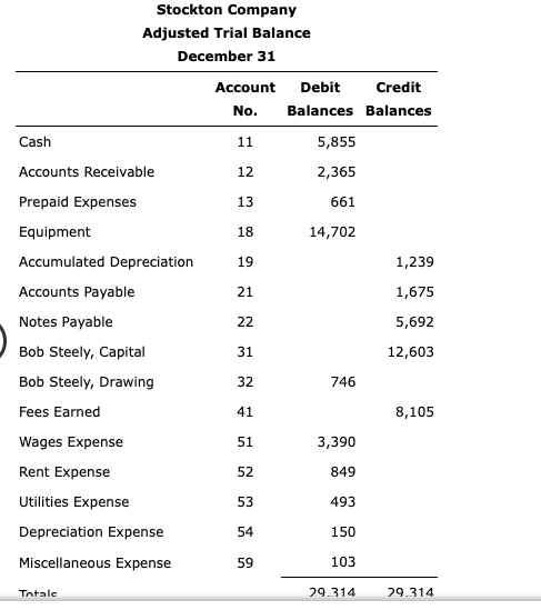 Solved Stockton Company Adjusted Trial Balance December 31 Chegg Com