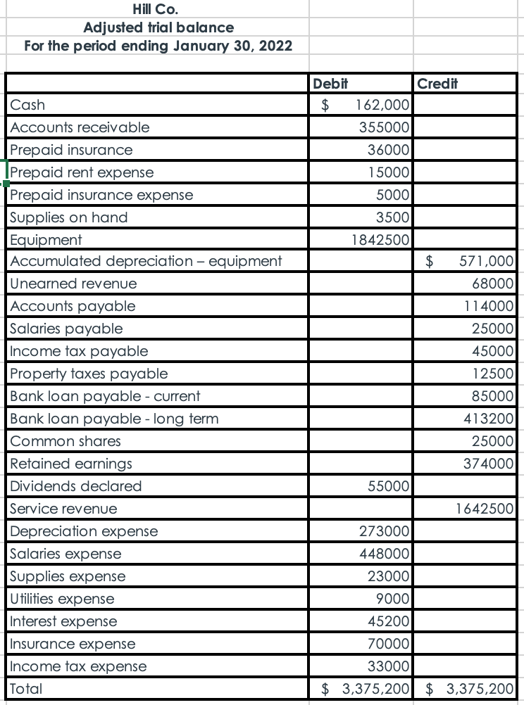 Solved Hill Co Adjusted Trial Balance For The Period Ending Chegg Com
